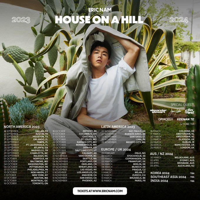 Fans can find out more information about the tour or sign up for presale by signing up to Eric Nam’s newsletter through his official website and through telegram.