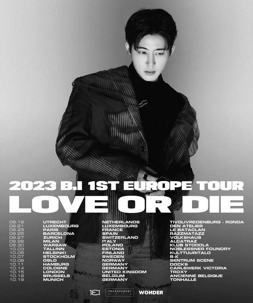 The tour comes after his former group iKON made their first venture into Europe just a couple of weeks ago toured Europe as part of their TAKE OFF World tour, performing in Essen, Florence and Paris.